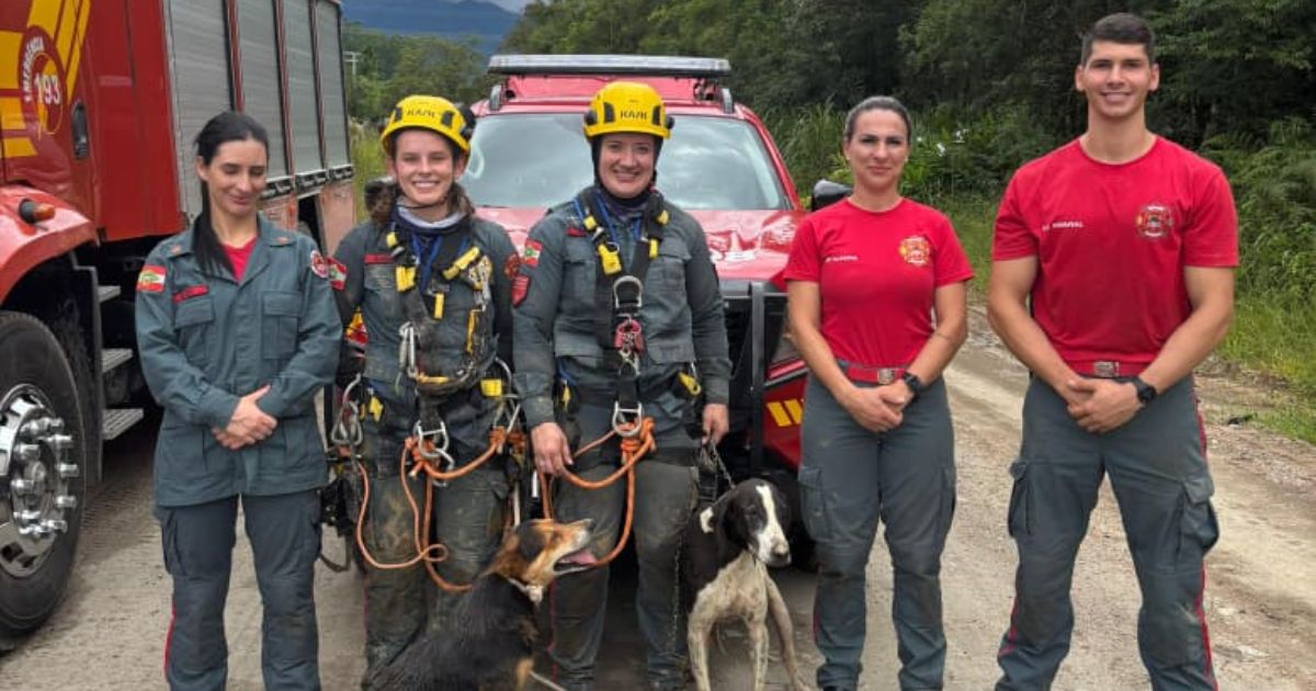 Dois cachorros foram resgatados pelo Corpo de Bombeiros na quarta-feira (25) após caírem em um buraco com cerca de 10 metros de profundidade O caso ocorreu em Lauro Müller, no Sul de Santa Catarina.