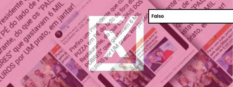 É falso o post viral que afirma: “Prefiro um presidente que come pizza em pé, do lado de fora do restaurante, do que os ‘pais dos pobres’, que gastavam 6 mil euros por um prato em jantar!”.