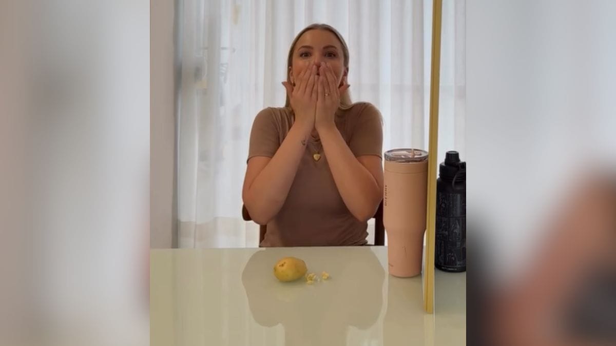 No caso de Djenny, o objeto escolhido pela criadora de conteúdo foi uma batata. Ela disse à sua filha Sophie que havia selecionado uma maçã. Já a adolescente, que estava com um corretivo de maquiagem, afirmou que havia escolhido um gloss.