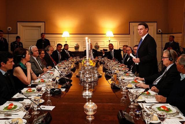 Nos Estados Unidos desde domingo (17), onde terá seu primeiro encontro bilateral com o Donald Trump, Jair Bolsonaro selou uma incipiente aliança conservadora com formadores de opinião durante um jantar na embaixada do Brasil. Segundo o porta-voz da Presidência da República, general Otávio Rêgo Barros, o presidente brasileiro fez um discurso no qual afirmou que é preciso fortalecer o comércio e criticou o "antigo comunismo". As informações são do jornal Folha de S. Paulo.