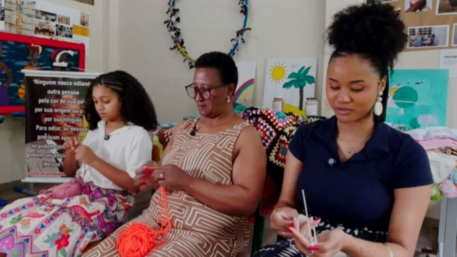 As peças já circulam dentro e fora da comunidade, inspirando as mais novas. Heloísa, de 9 anos, decidiu seguir o mesmo caminho: “Todo mundo tava fazendo toalha, roupa… Aí eu decidi fazer pra ver como é que era”.