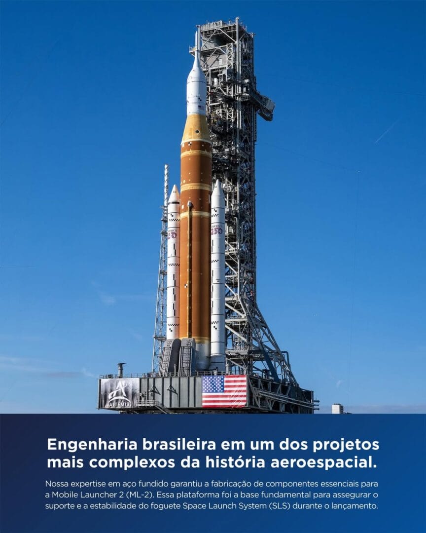 “A Altona integra a cadeia de fornecedores do programa espacial Artemis II. Nossa expertise em aço fundido garantiu a fabricação de componentes essenciais para a Mobile Launcher 2. Essa plataforma foi a base fundamental para assegurar o suporte e a estabilidade do foguete durante o lançamento”, disse.