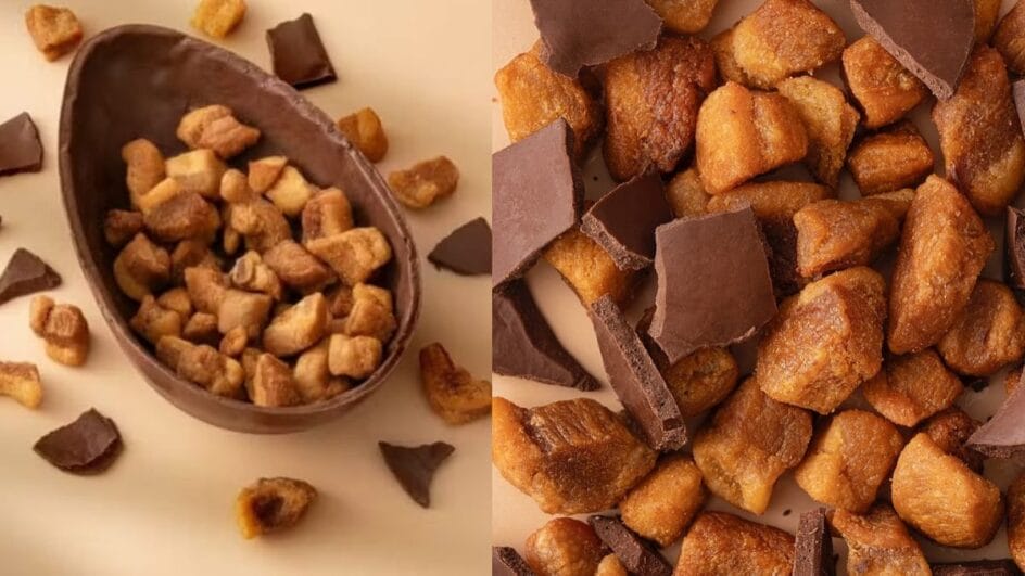 A casca do ovo é feita de chocolate, enquanto o torresmo compõe o recheio. Segundo a empresa, o produto pode ser consumido de duas formas: saboreando o chocolate e o torresmo separadamente ou misturando ambos ao mesmo tempo, proporcionando uma combinação singular de sabores.