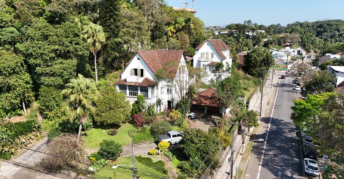 Árvores e plantas escondem parte de um imóvel centenário que fica sobre uma colina no Centro de Joinville. Ainda assim, é possível ver um pouco da arquitetura da casa, com uma sacada e janelas que revelam o quanto o local é antigo. Parte da história da cidade, o imóvel já abrigou a antecessora da Celesc e, agora, está à venda.