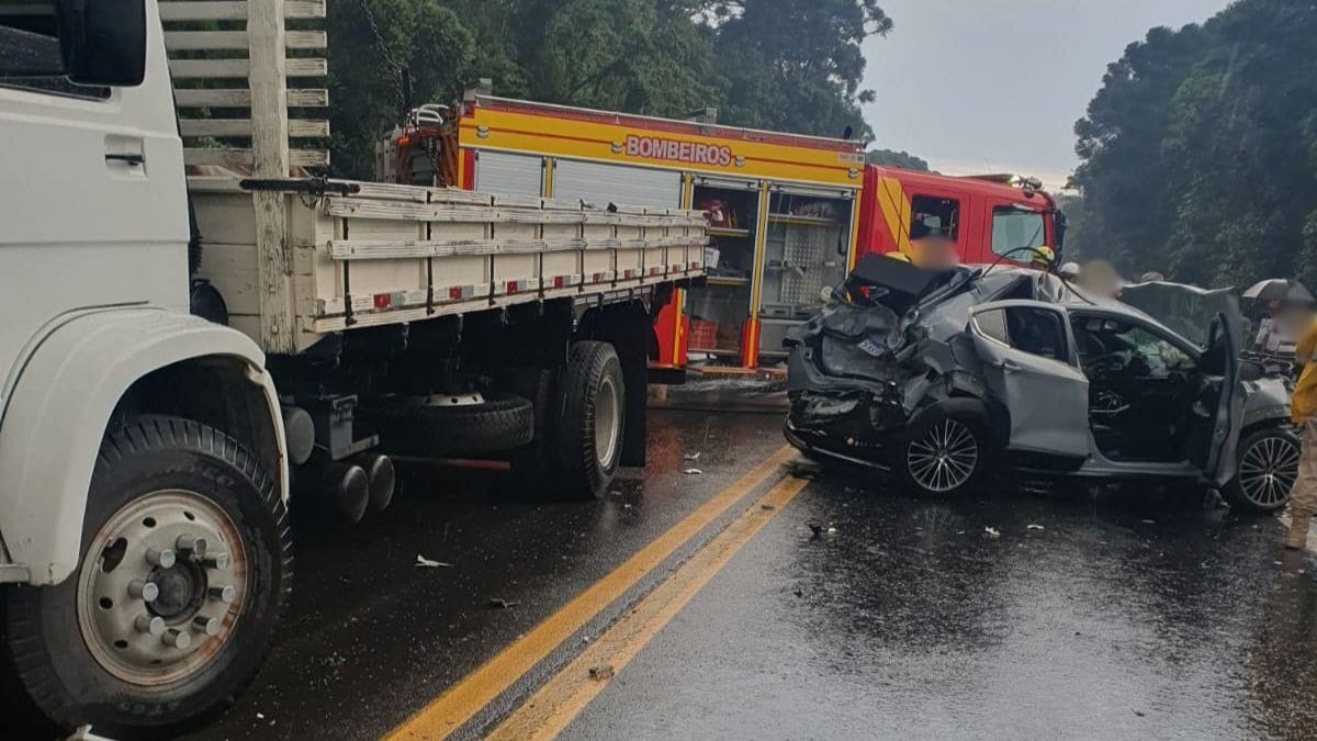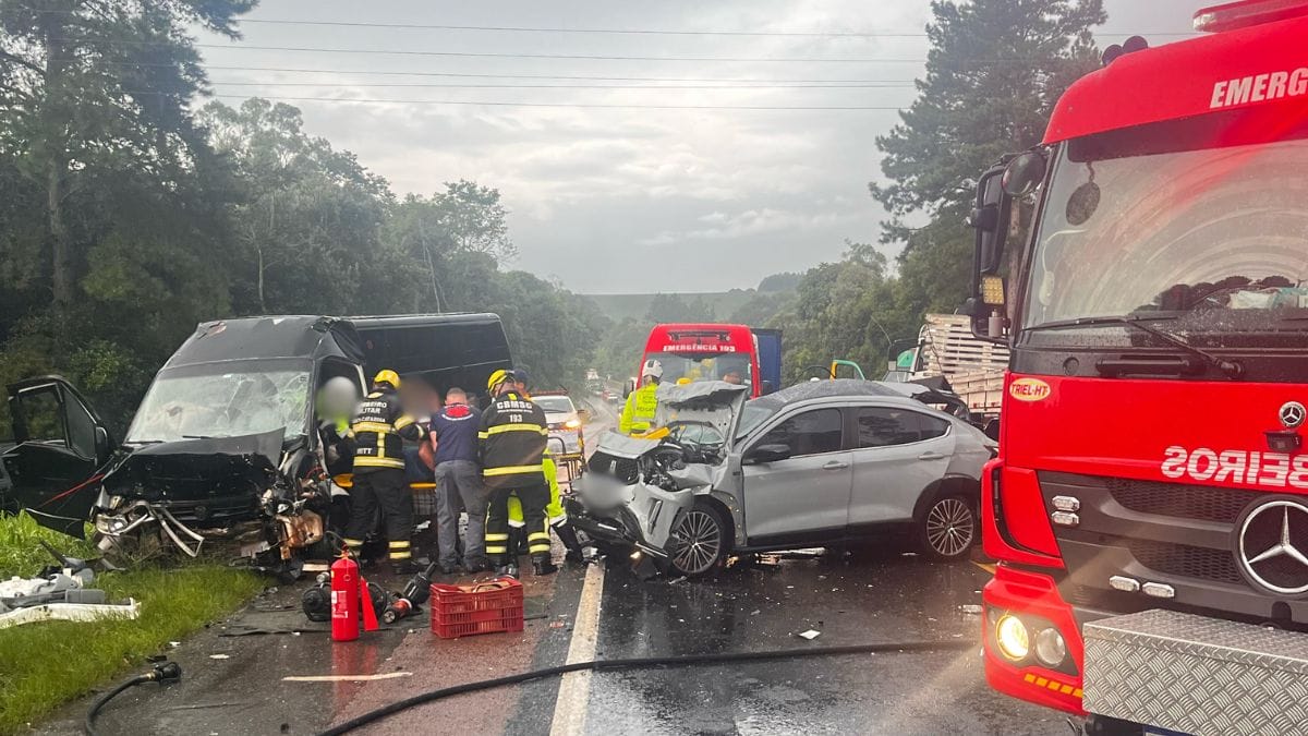 Um empresário morreu e outras duas pessoas ficaram feridas em um acidente que envolveu três carros, uma van e um caminhão no fim da tarde de quarta-feira (19), na BR-116, em Mafra. A vítima foi identificada como Osmario Davet Filho, de 64 anos.