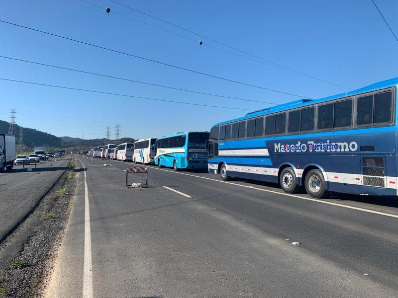 Diversos ônibus de turismo circularam pelas rodovias da região do Vale do Itajaí na manhã desta segunda-feira (8) como forma de protesto. O setor está parado desde o dia 18 de março devido à pandemia do novo coronavírus e, de acordo com o decreto do governo do Estado, deve permanecer suspenso ao menos até o dia 2 de agosto.