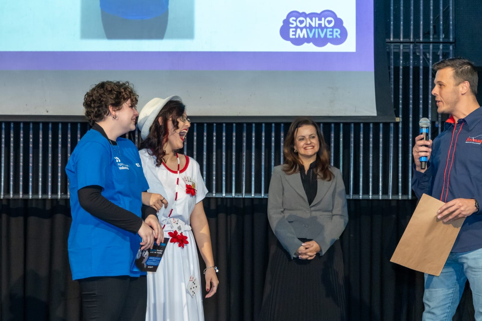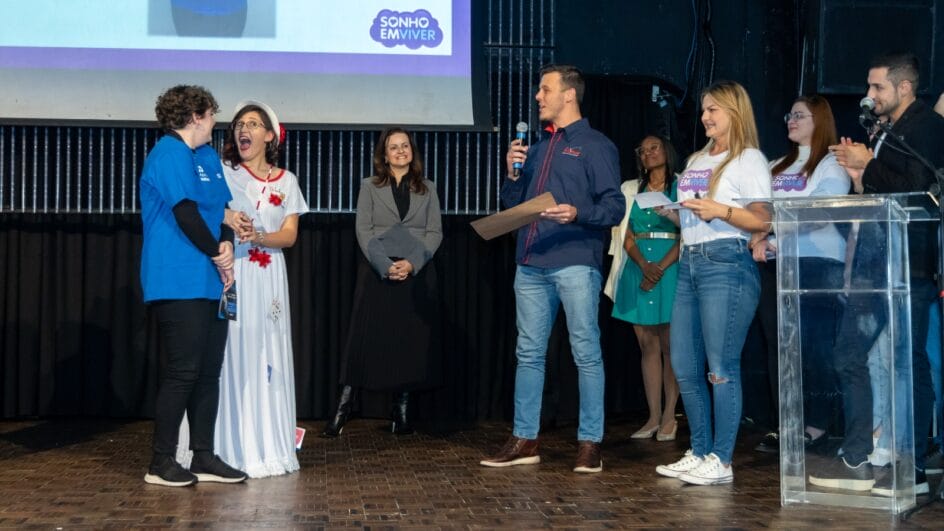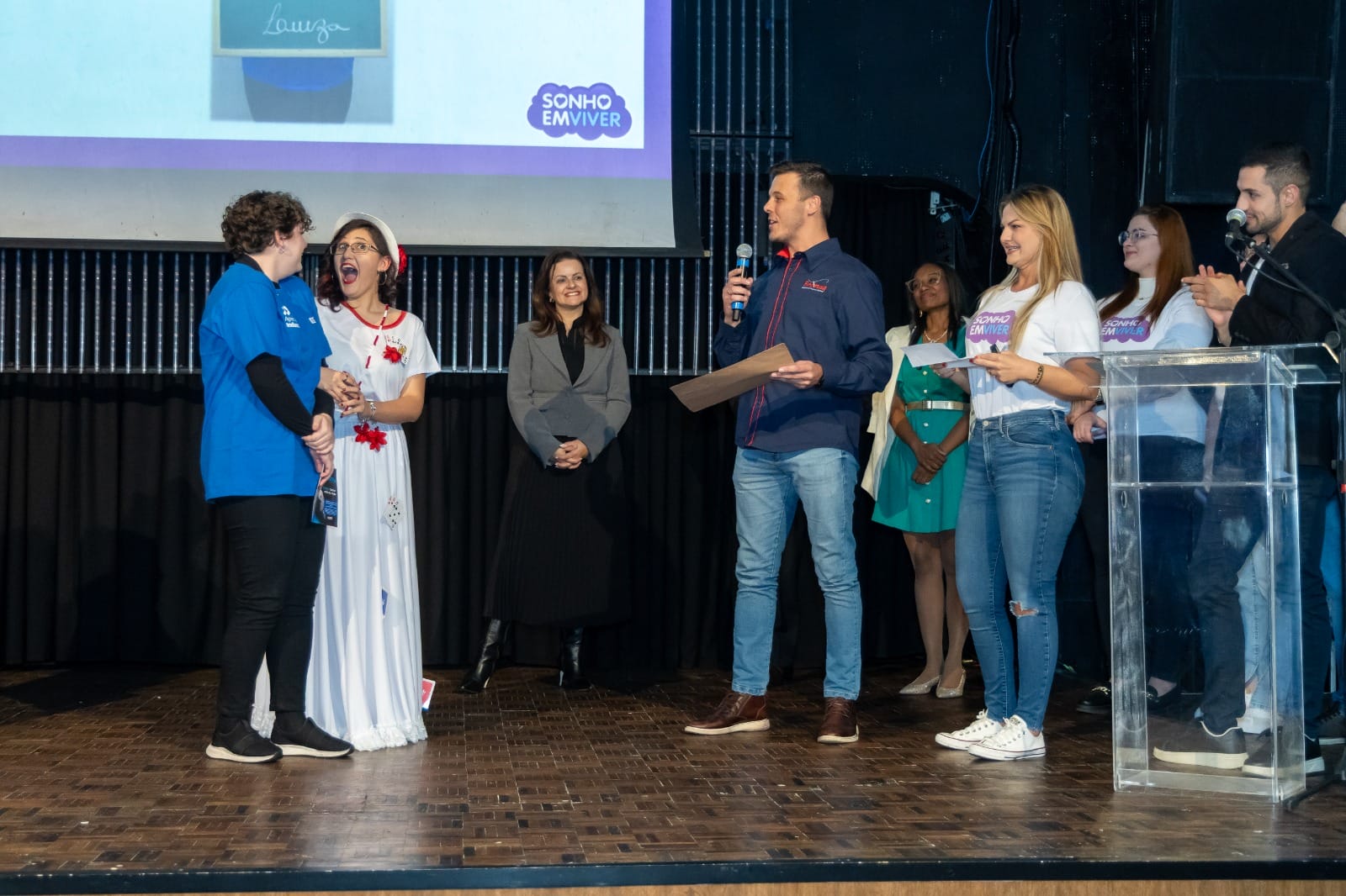 É que a anônima, na verdade, é uma das integrantes do Sonho em Viver. O instituto torna realidade os desejos mais genuínos de pessoas que nem sempre têm dinheiro para isso. Luiza e os outros 10 colegas do curso de Modelagem do Senai foram surpreendidos durante um evento no último fim de semana, após apresentarem os looks que produziram em sala de aula.