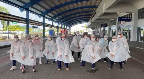Enfermeiras de Florianópolis dançam a música Bum Bum Tam Tam para comemorar a vacinação de idosos