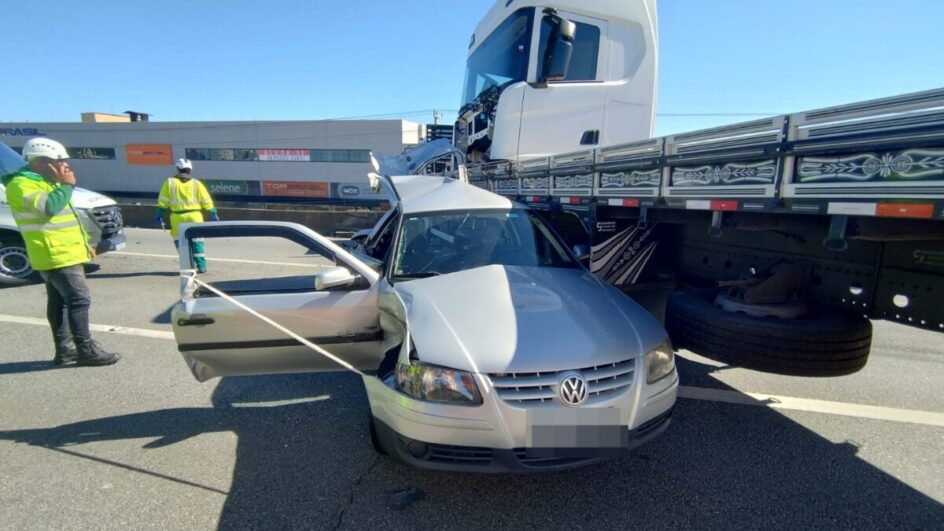 O motorista do carro ficou ferido. De acordo com o Corpo de Bombeiros (CBMSC), a vítima ficou presa às ferragens dentro do automóvel. Após o resgate, o motorista foi avaliado, apresentando-se consciente e orientada, e conduzido a um hospital pelo Samu.