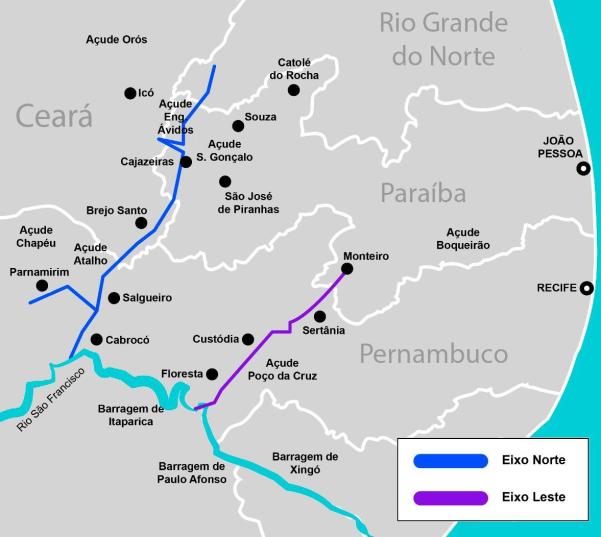 O Projeto de Integração do Rio São Francisco é uma obra gerida pelo Ministério da Integração e do Desenvolvimento Regional (MIDR) e tem o objetivo de levar água para regiões secas e semiáridas do Nordeste brasileiro. A transposição permite o abastecimento de açudes e rios intermitentes (que desaparecem nos períodos de seca) e é composta por dois eixos principais: o Eixo Norte, que leva água para cidades em Pernambuco, Ceará, Paraíba e Rio Grande do Norte; e o Eixo Leste, que abastece as cidades de Pernambuco e Paraíba.