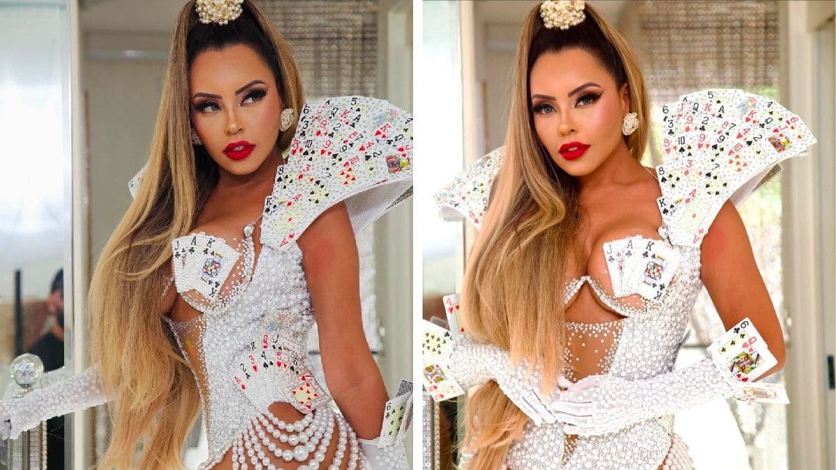 No primeiro ensaio, ela usou um figurino de cartas, coberto de cristais. No segundo, apareceu como uma tigresa, em referência a um jogo online. No último ensaio, se inspirou no jogo do bicho e veio vestida de pavão.