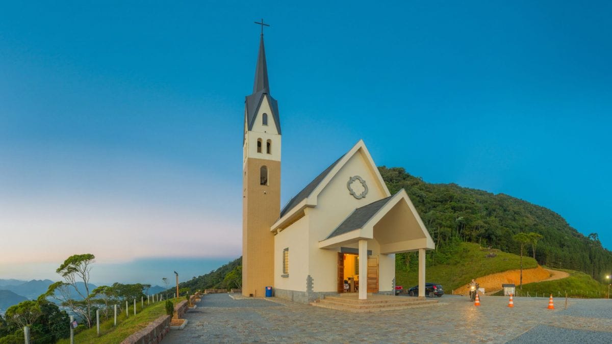 Chiesetta Alpina é uma pequena capela localizada no alto do Morro das Antenas (Foto: Portal de Turismo de Jaraguá do Sul, Divulgação)