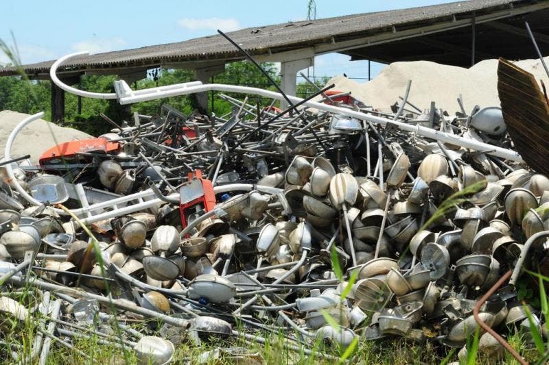 No pátio que pertence à Secretaria de Infraestrutura (Seinfra) e está localizado nos fundos da Praça do Calceteiro, no bairro Boa Vista, há sucata de materiais utilizados na iluminação pública.