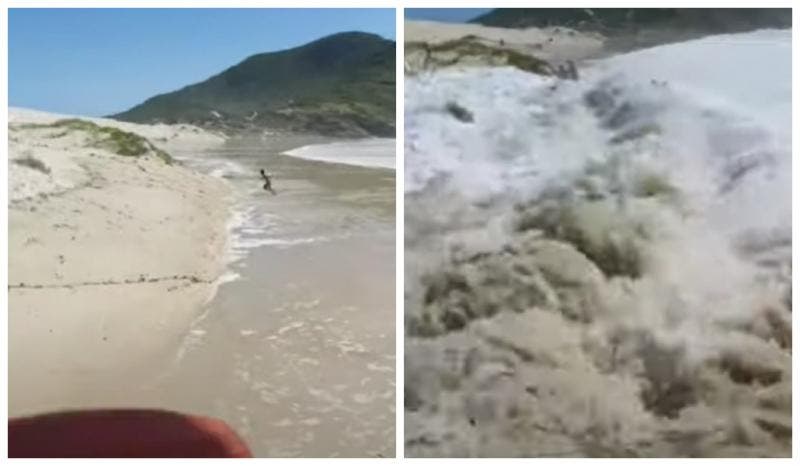 A Epagri/Ciram desmentiu a ocorrência de um “minitsunami” na Praia do Santinho, em Florianópolis, neste fim de semana. Imagens que circulam nas redes sociais mostram o momento em que a faixa de areia da praia é totalmente tomada pela força das águas. O fenômeno, no entanto, se trata da ação da ressaca, segundo o órgão que monitora as condições climáticas em SC.