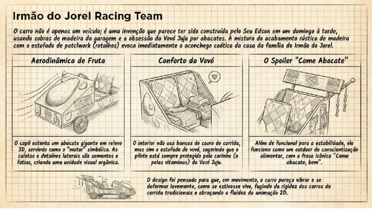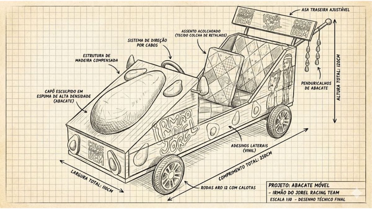 “Abacate Móvel”, o nome do carrinho joinvilense selecionado para participar da Ladeira Abaixo, foi inspirado na animação brasileira Irmão do Jorel, que tem uma frase famosa sobre a fruta.