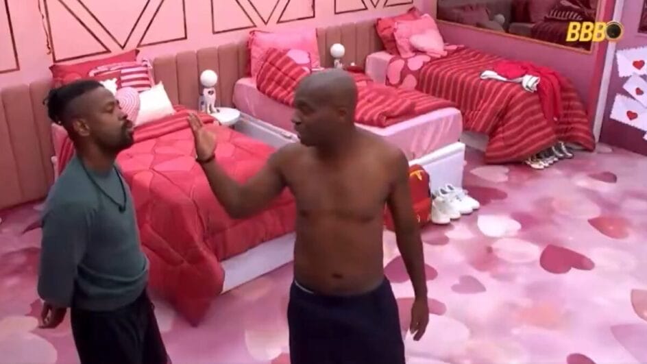 Os dois começaram a se aproximar e foi então que Edilson colocou o dedo na cara de Leandro empurrando o rosto do colega de confinamento. “Boneco” se aproximou ainda mais do rosto do jogador e disse para ele não encostar nele.