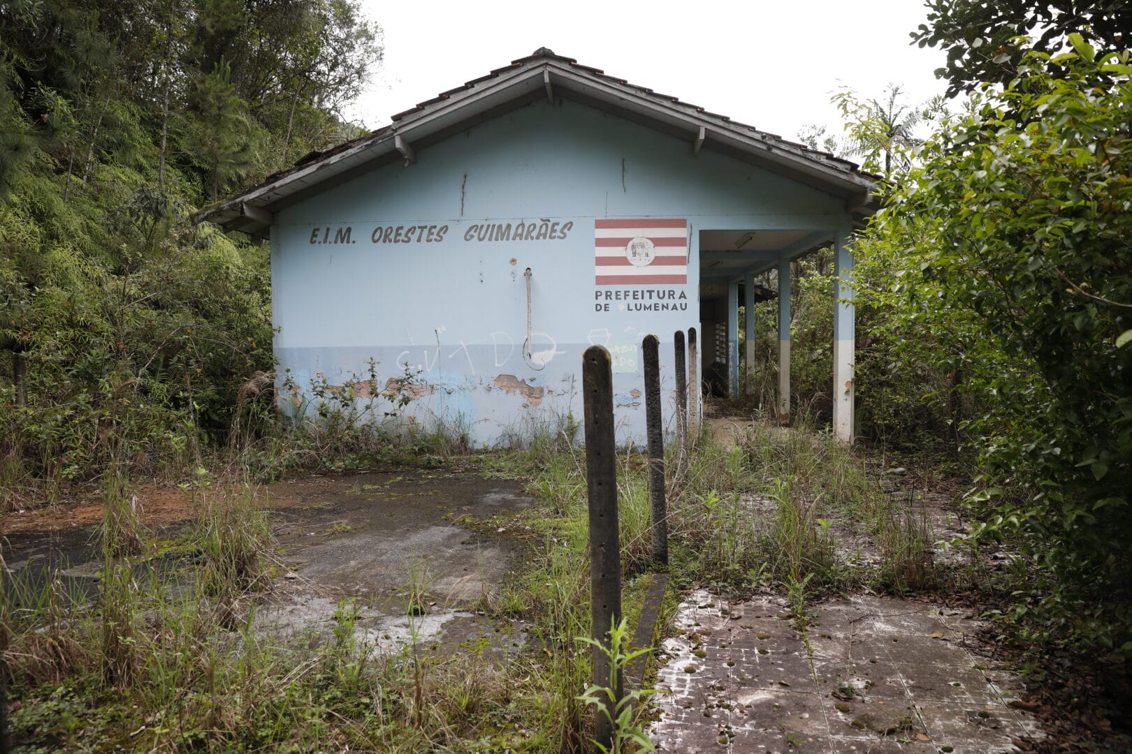 O sinal que indica o horário do recreio ainda toca. Alguns livros seguem nas prateleiras, porém agora empoeirados. O mesmo acontece com o parquinho, com as bolas de futebol e, até, com um punhado de cadeiras infantis. Há um ano, as carteiras da escola Erich Klabunde, em Blumenau, não têm mais crianças estudando, mas o cenário soa como se o pequeno colégio tivesse parado no tempo. Os alunos foram transferidos para um lugar novo, recém-construído, mas o prédio antigo permanece quase do mesmo jeito como terminou o último ano letivo.