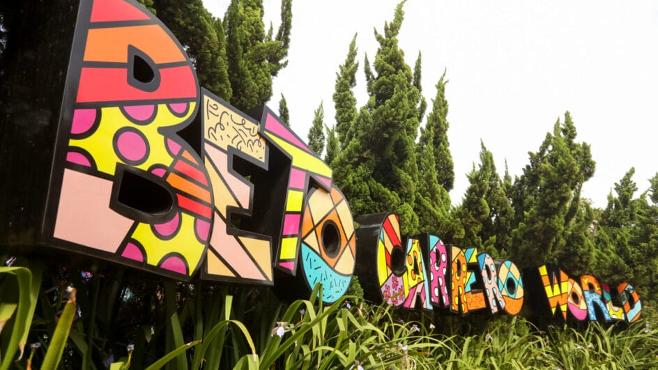 Famoso por seus brinquedos e atrações, o Beto Carrero World é também um dos espaços mais vibrantes de arte pública do país. Desde 2022, a Praça de Eventos abriga a maior exposição a céu aberto de esculturas do artista Romero Britto.