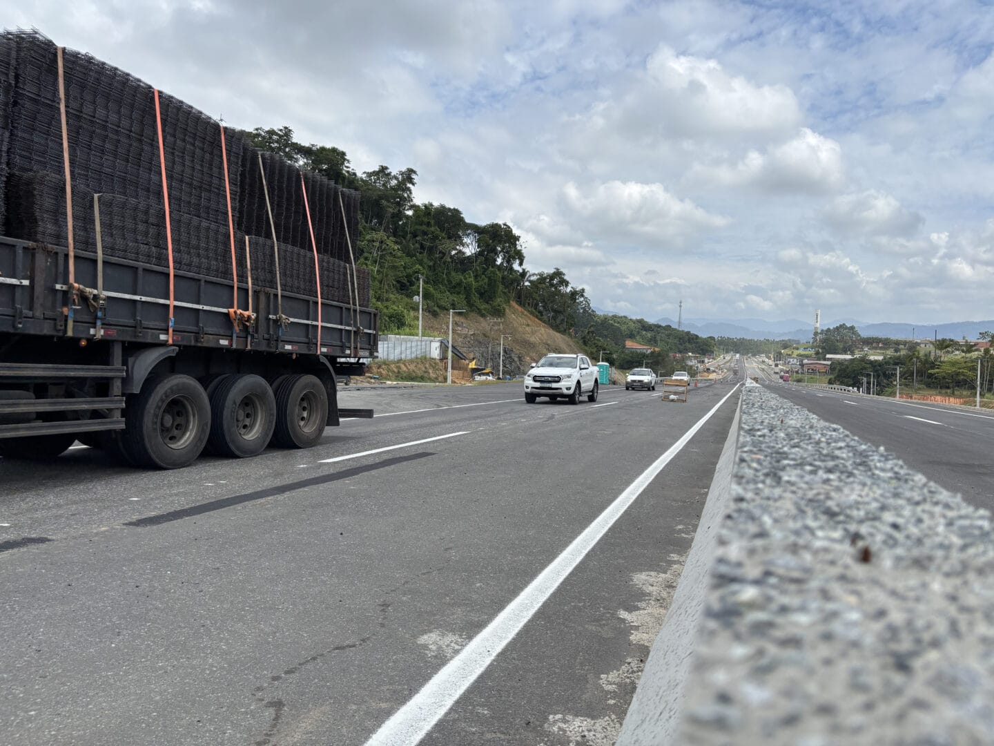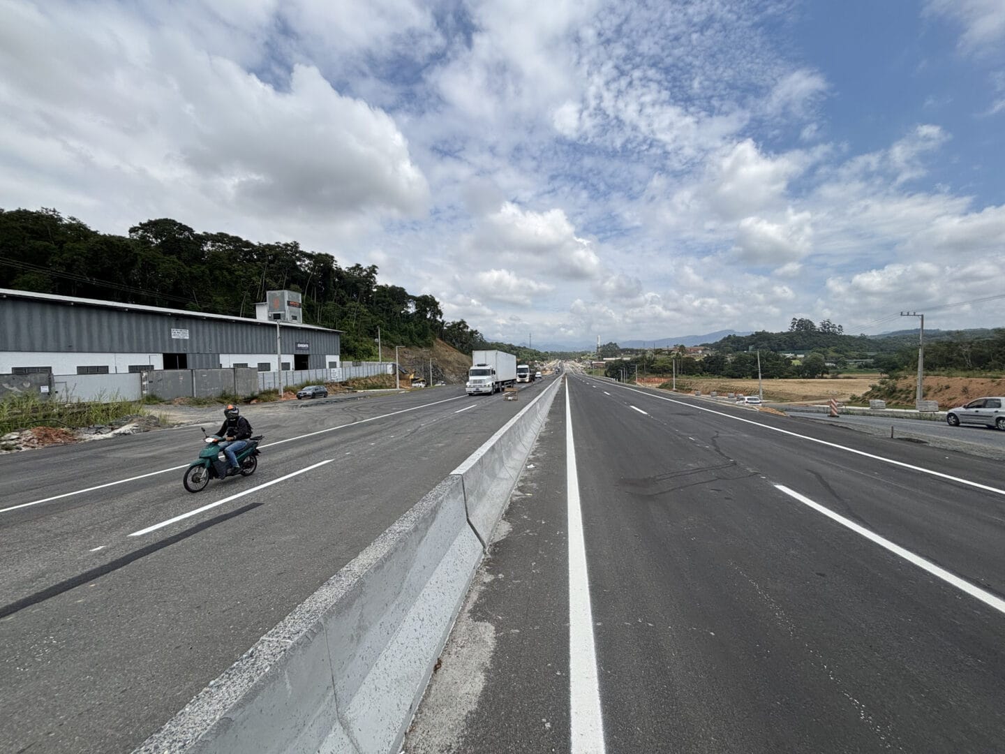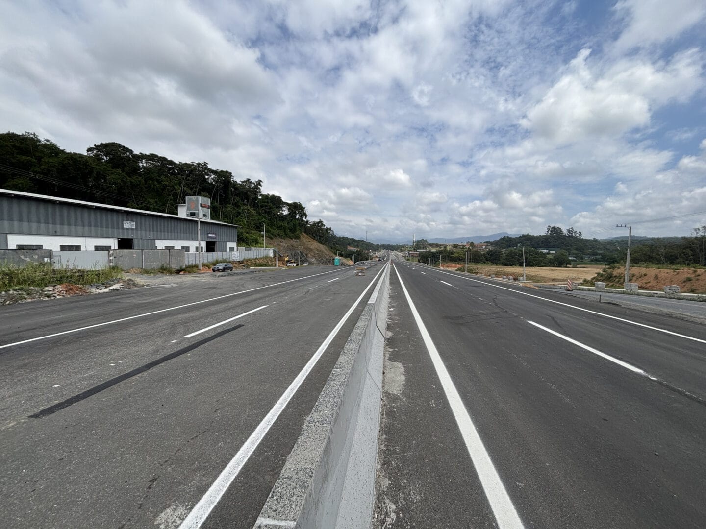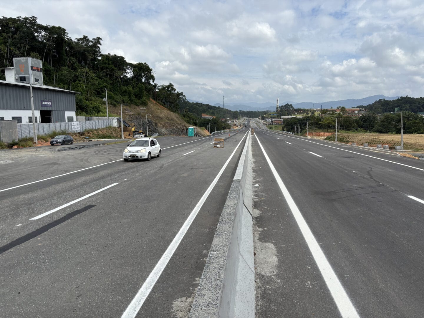 Um trecho importante do lote 4 da duplicação da BR-470 foi liberado para tráfego na noite desta terça-feira (17), no sentido Indaial a Blumenau, e a mão contrária tem previsão de ser liberada ainda nesta quarta-feira (18). As obras ainda não foram completamente concluídas e, por isso, está em pista única até o momento para que os últimos ajustes sejam feitos no viaduto, conforme explica o Departamento Nacional de Infraestrutura de Transportes (Dnit).
