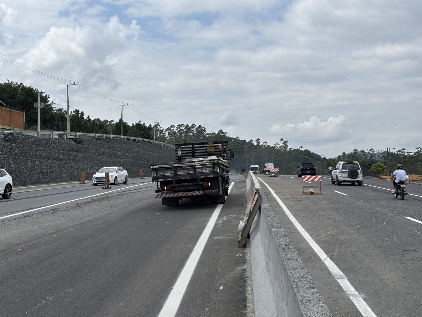 A orientação para os motoristas é redobrar a atenção, respeitar a sinalização provisória e manter a velocidade reduzida ao passar pelo trecho, que continua em obras com máquinas e caminhões na pista, como mostrou o cinegrafista Thiago Habeck no Jornal do Almoço da NSC TV.