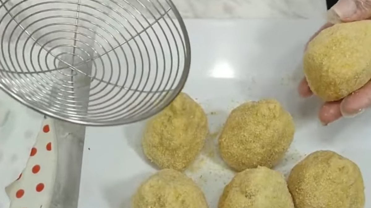 Molhe fatias de pão de forma sem casca no leite temperado, espremendo bem o excesso para evitar que desmanche. Coloque o recheio de frango no centro, modele com cuidado em formato de coxinha, fechando buracos para o recheio não vazar, usando luvas se disponível.
