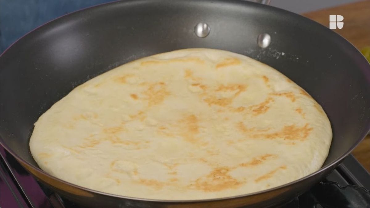 Leve uma frigideira grande antiaderente para aquecer em fogo médio. Se preferir, utilize uma frigideira de ferro para pizzas com pontos mais tostadinhos.