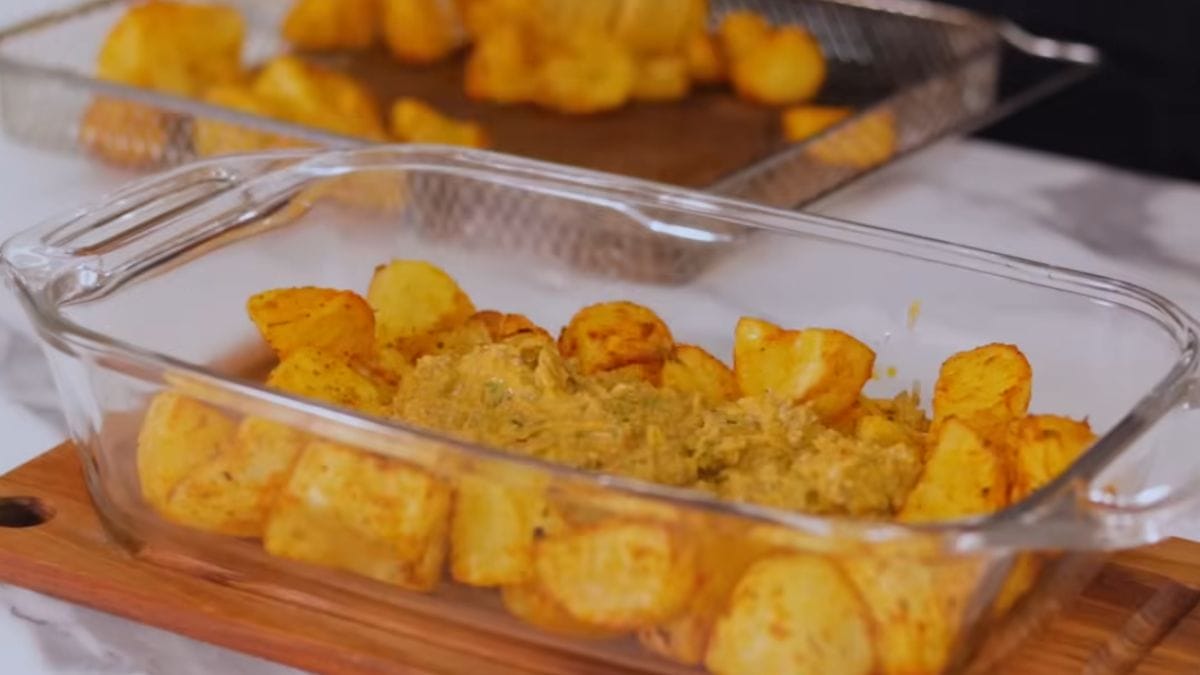 Agora pegue as batatas temperadas e coloque em um refratário. Em seguida, despeje a carne moída cremosa e faça mais uma camada com as batatas. Por último, acrescente o queijo e leve para dourar por alguns minutos no forno. Sirva como preferir.