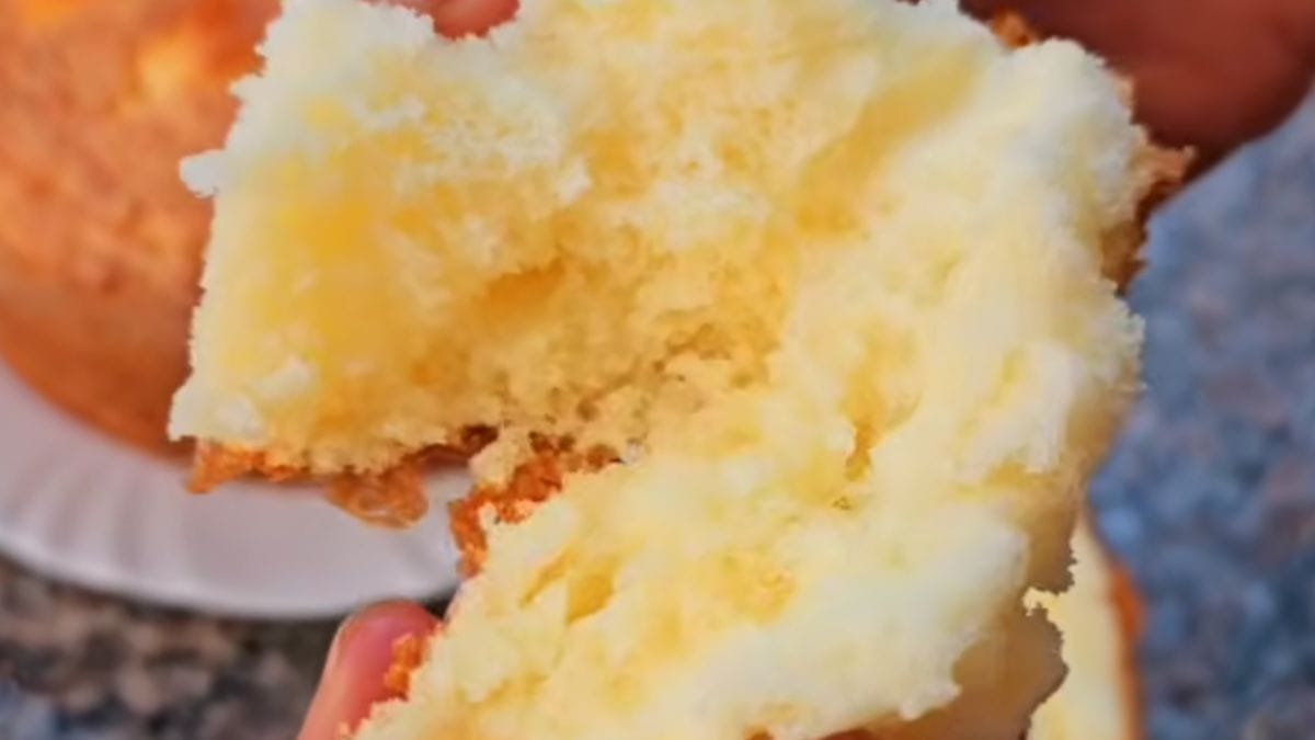 A receita é uma sugestão para fazer no café da tarde e surpreender. O bolo fica com massa fofinha, parecendo algodão.