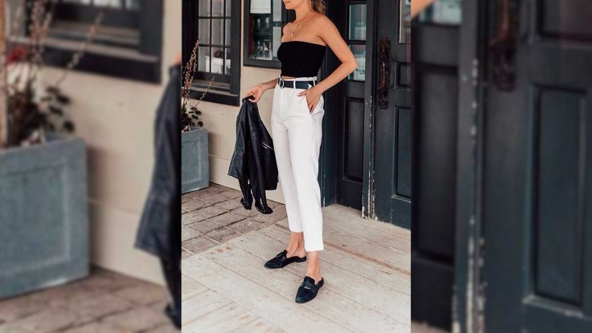 Combinar o calçado com peças preto e branco de alfaiataria é uma opção estilosa e prática, que fogo de erros. O ideal é investir em acessórios com detalhes e texturas, criando pontos de interesse no look, segundo a Elle.