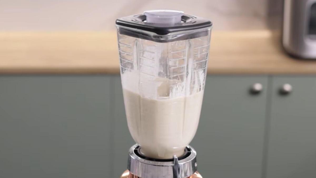 Primeiro, coloque o leite de coco, água, açúcar demerara, óleo de coco e a castanha já hidratada em um liquidificador e deixe misturar bem. Em seguida, adicione o coco ralado e bata rapidinho.