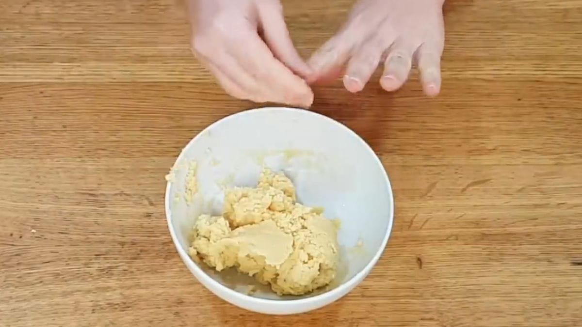 Adicione a farinha de coco e misture novamente até atingir o ponto certo. Agora, forre uma forma com papel vegetal, modele a massa como quiser e leve para assar em 180°C por 15 minutos.