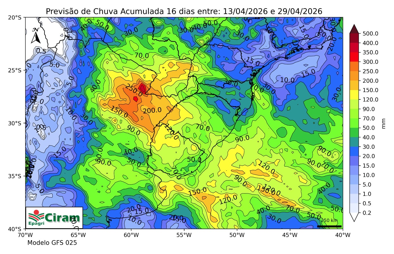 Primeiro, porque abril é um mês que historicamente tem um dos menores volumes de chuva na maioria das regiões catarinenses, mostra uma pesquisa do meteorologista Caio Guerra. Segundo, que a previsão da Epagri/Ciram para os próximos 15 dias demonstra a predominância de uma massa de ar seco, com chuvas que voltam a ganhar força perto da última semana do mês.