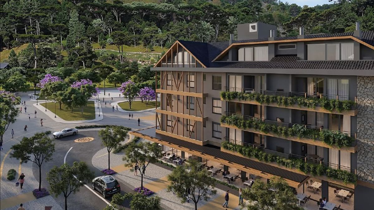 Com um estilo serrano contemporâneo, de frente para o Casarão, o Terrano já é um sucesso de vendas, com mais de 50% dos apartamentos já comercializados. O Edifício Terrano oferece 12 apartamentos, com lareira, varanda com churrasqueira e duas ou três vagas de garagem. A estimativa do preço das unidades é calculada com valor de R$ 14 mil por metro quadrado.