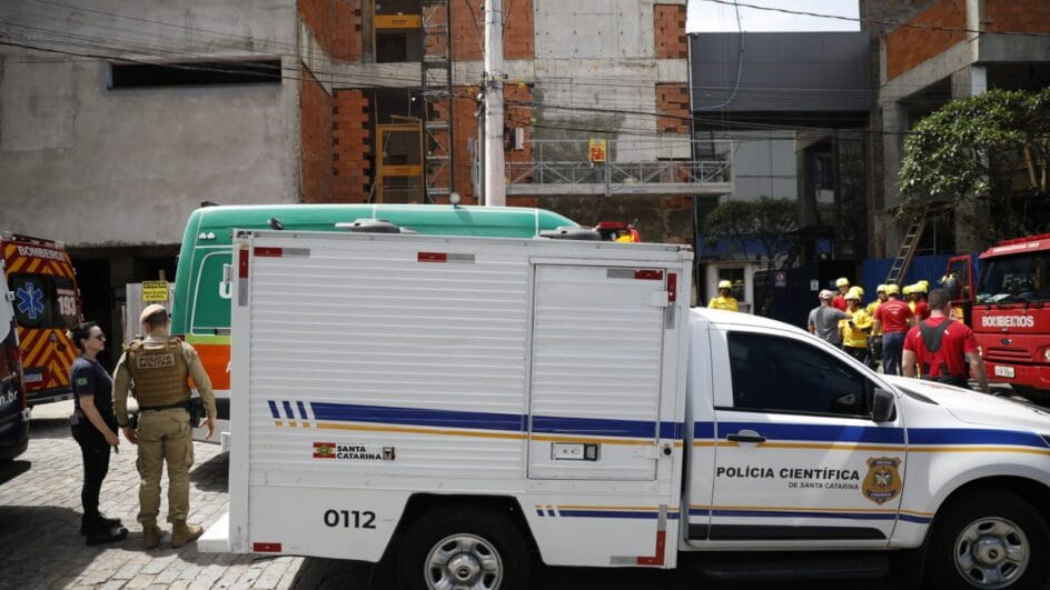 Parte da obra em que um acidente deixou um trabalhador morto e cinco feridos na manhã desta quarta-feira (5) ainda apresenta risco de colapsar, conforme alertam os bombeiros. A construção, que faz parte de um projeto de ampliação do Hospital de Olhos, parou o Centro de Blumenau quando uma laje caiu durante a concretagem.