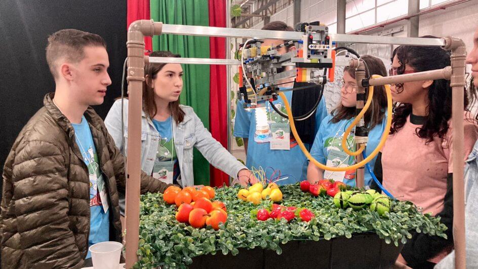 Pensando em auxiliar o avô Romeu a economizar água durante a regagem da horta, o jovem Heitor Rauber Scussiato, de 15 anos, criou um irrigador de plantas automatizado, que possibilita monitorar por vídeo qual planta deve ser regada, a quantidade de água que está sendo depositada, além da umidade do solo. O aluno estuda no 9° ano da Escola Zélia Scharf, de Chapecó, e começou o trabalho em março e foi aprimorando aos poucos para expôr na feira.