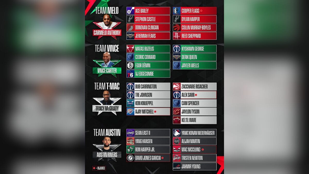 - Equipe Cameron: Jalen Johnson (Atlanta Hawks); Kon Knueppel (Charlotte Hornets) e Corey Maggette (Lenda da NBA)