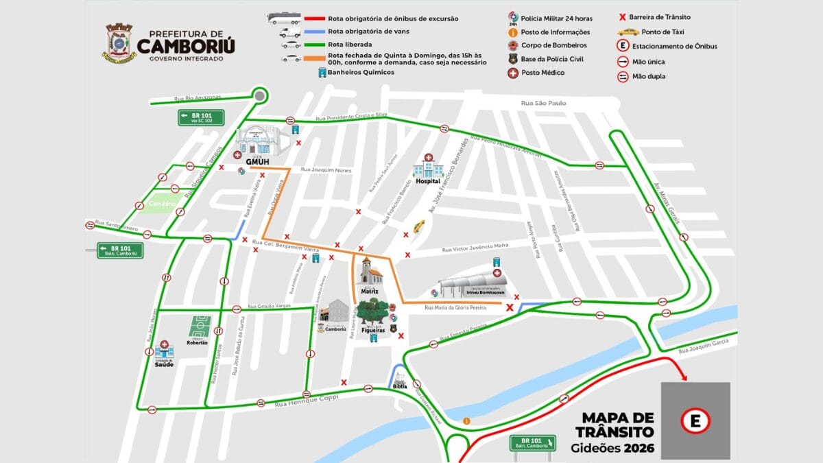 Quem transita por Camboriú durante a realização do 41º Congresso dos Gideões Missionários da Última Hora (GMUH), deve estar atento as mudanças no transito da cidade. Apesar de ter iniciado no último sábado (25), as principais alterações acontecem a partir dessa quinta-feira (30), quando o evento se estende ao Ginásio de Esportes Irineu Bornhausen.