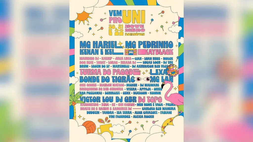 O Universipraia 2025 acontece a partir de quinta-feira (20) no bairro Canasvieiras, em Florianópolis, e junta música, esporte e praia por três dias. Entre os shows nacionais, está a cantora Lexa e o grupo Bonde do Tigrão, que se apresentam em um dos quatro palcos organizados para a o evento.