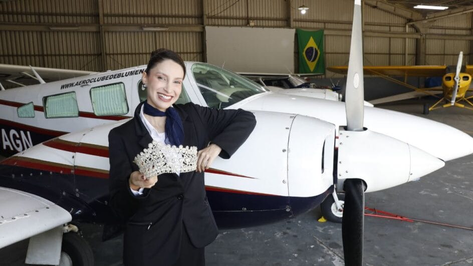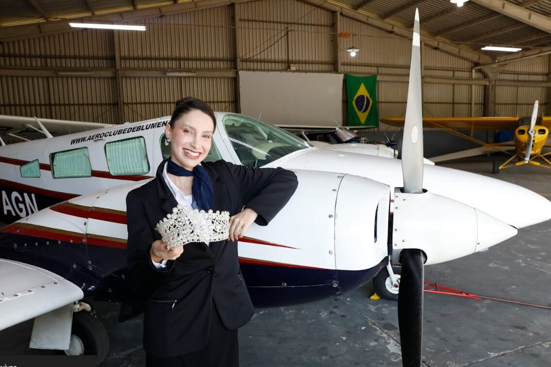 No auge do reinado, em outubro do ano passado, a ex-rainha, que é influencer, foi chamada pelo aeroclube de Blumenau para gravar um conteúdo. Semanas depois, ao ir até o lugar — que é uma escola de aviação civil — descobriu que ali, do lado do Aeroporto Quero-Quero, a minutos de onde mora, é oferecido o curso de comissário de bordo. As aulas duram três meses e, com custo na casa dos R$ 3 mil, preparam alunos a partir dos 18 anos com Ensino Médio completo.