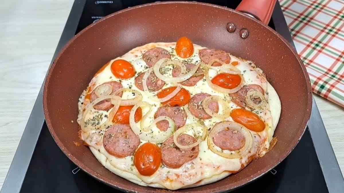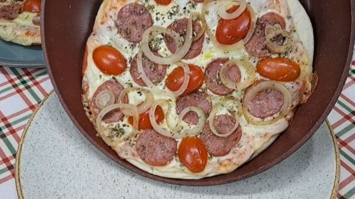Essa receita é a opção perfeita para o jantar. Simples e rápida de fazer, essa pizza é feita na frigideira e a massa leva poucos ingredientes. Confira o passo a passo.