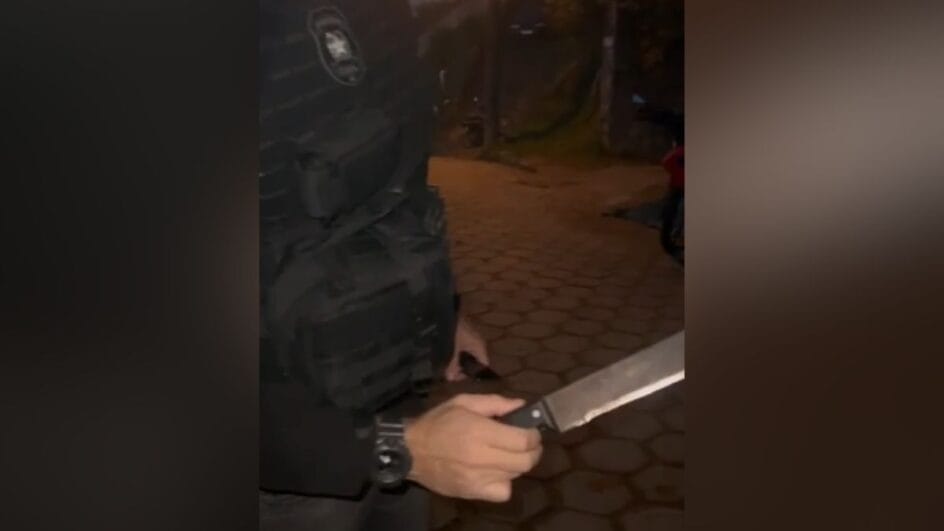 Por isso, o suspeito foi preso no bairro Ponta Aguda. O facão utilizado nas agressões também foi apreendido em uma busca no veículo.