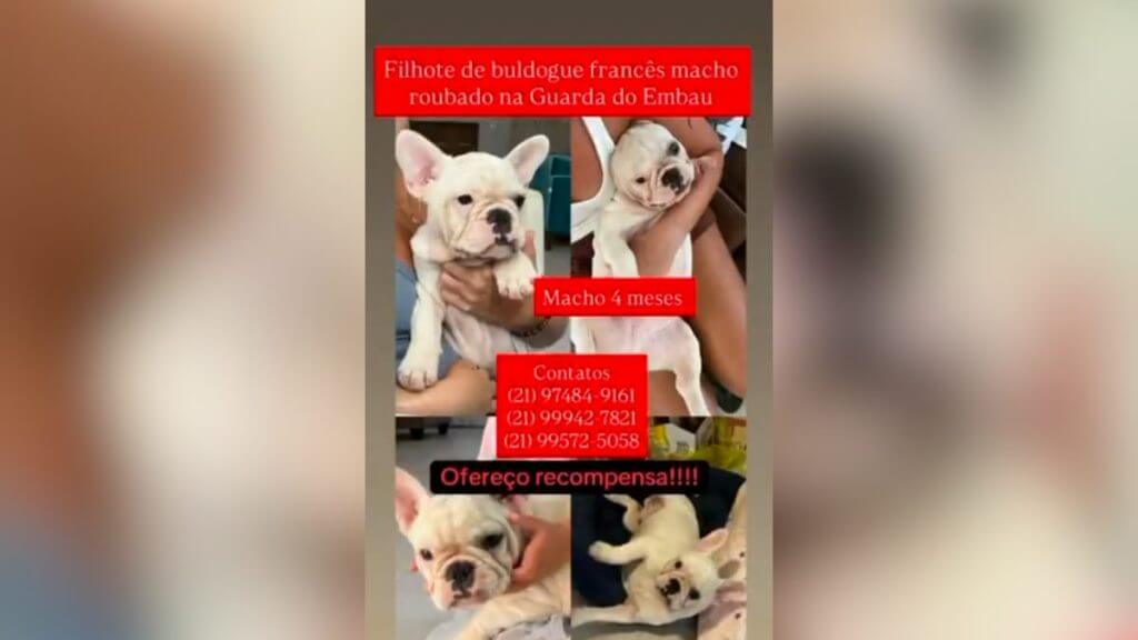 O nome do cão, de acordo com a família, é uma homenagem ao jogador Jhon Kennedy, do Fluminense. Ele é um buldogue francês macho de apenas quatro meses. É possível contatar a família por meio do telefone: (21) 97484 9161, caso a pessoa tenha informações sobre o paradeiro do cão.
