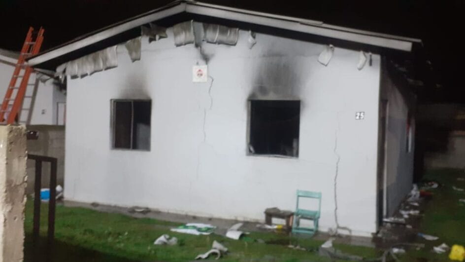 Uma família viveu momentos de terror ao acordar no meio da noite com a casa em chamas. Imediatamente, o casal com os dois filhos, de 7 e 10 anos, fugiram do local e acionaram os bombeiros. O imóvel localizado em Três Barras, pequena cidade do Planalto Norte catarinense, foi destruído pelo incêndio, que chegou a atingir uma residência vizinha durante o domingo (8).