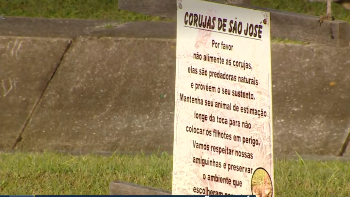 No total, quatro corujas moram no local. Para evitar o estresse das aves, moradores da região instalaram uma placa com informações sobre os bichos:
