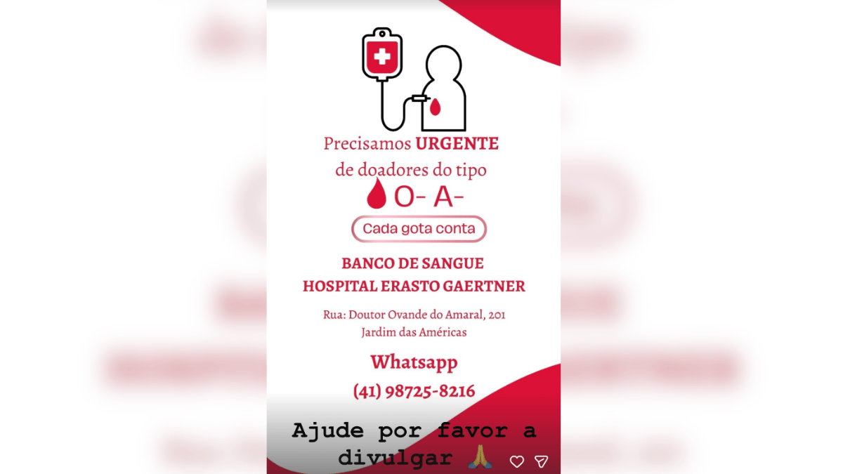 Segundo a família, as doações podem ser feitas diretamente no Hospital Erasto Gaertner, localizado na rua Doutor Ovande do Amaral, no bairro Jardim das Américas, em Curitiba.