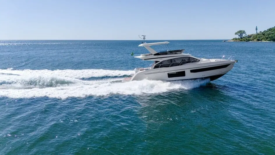 Para a família aproveitar momentos ao ar livre, na popa o iate possui um lounge sobre as águas com mesa de jantar integrada com o salão principal e a cozinha. Um dos pontos fortes do modelo é o “flybridge”, considerado um espaço nobre de lazer, e uma das áreas favoritas dos clientes brasileiros.