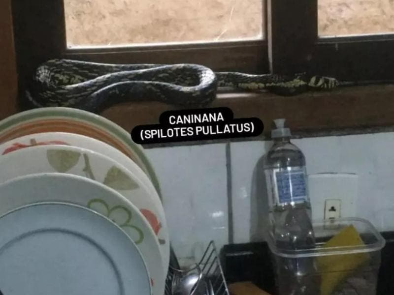 A cobra se tratava de uma caninana (Spilotes pullatus), uma espécie não venenosa. Segundo Renan Gabriel Piechontcoski, o homem que retirou o animal da residência, sua mãe a encontrou na janela da cozinha quando foi preparar o café da manhã.