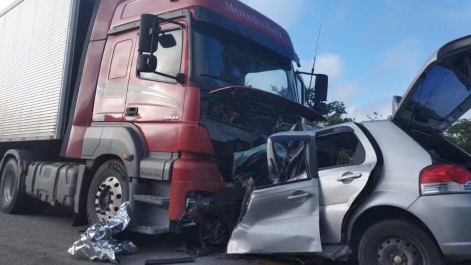 Já o carro, que tinha placas de São Paulo, seguia sentido à Bahia. Os dois veículos colidiram na altura do Km 263 da rodovia, de acordo com a Polícia Rodoviária Federal (PRF).
