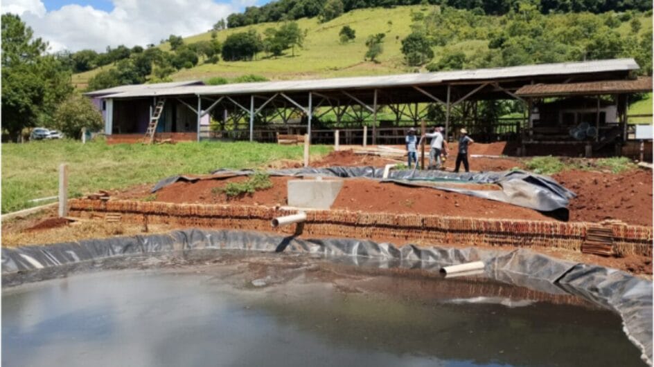 A instalação na propriedade da família Capitani teve um investimento total de R$ 15 mil, incluindo geomembrana, caixas de areia e passagem, calhas para coleta de água da chuva, tubulações, cerca de isolamento, fogão campeiro e fogareiro.
