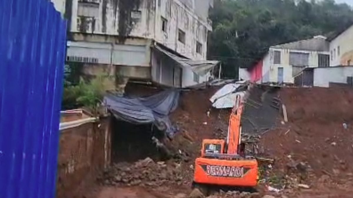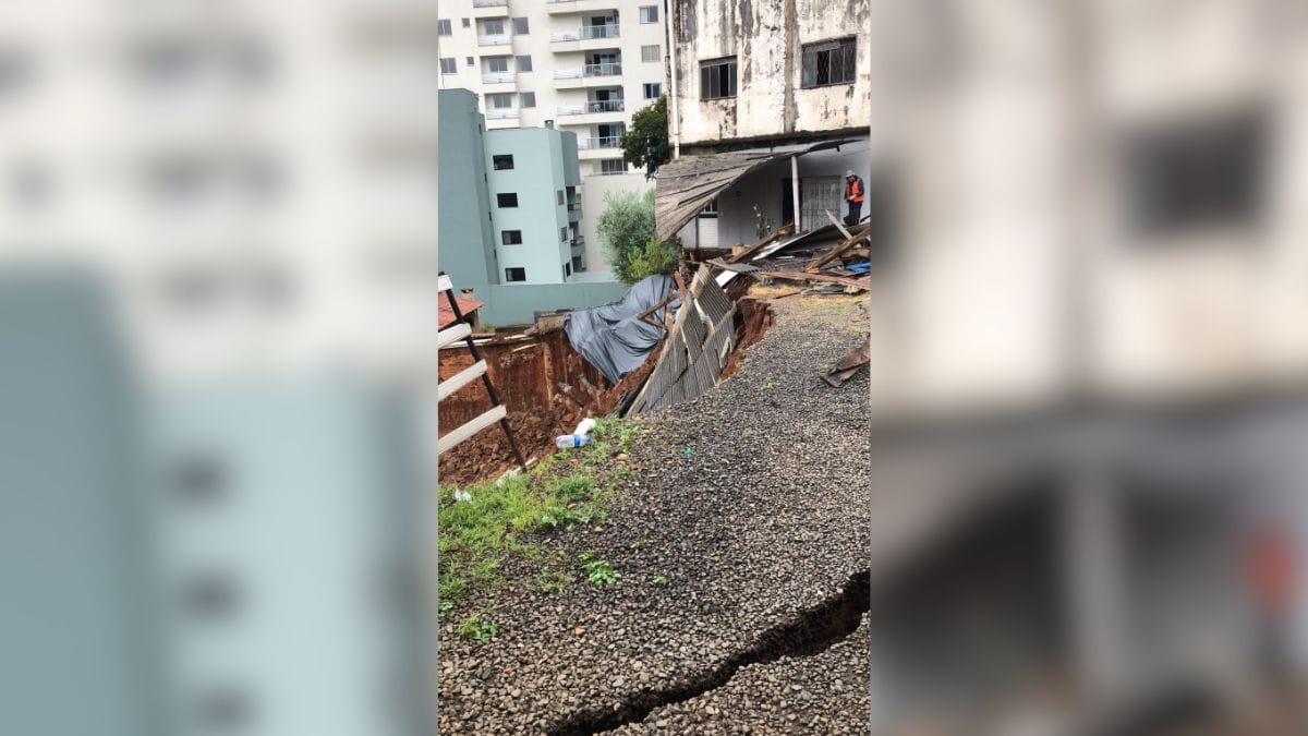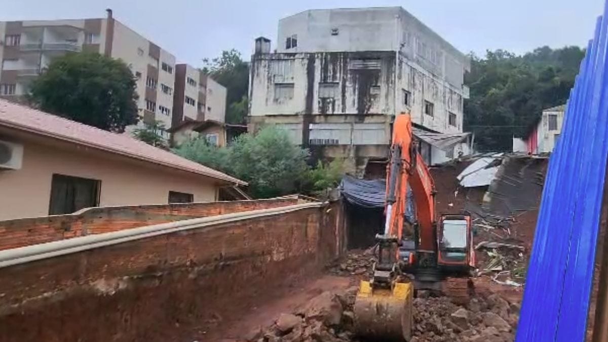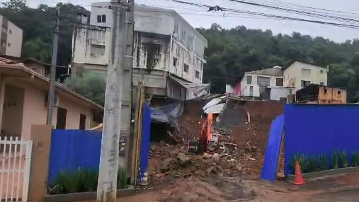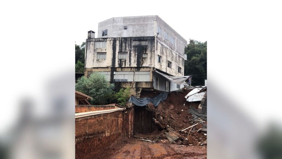 O deslizamento de terra ocorreu em uma obra localizada na Rua Tiradentes. Em uma imagem registrada pela Defesa Civil, é possível ver que parte da terra que ficava sob o prédio deslizou, deixando a estrutura sem nenhuma base.